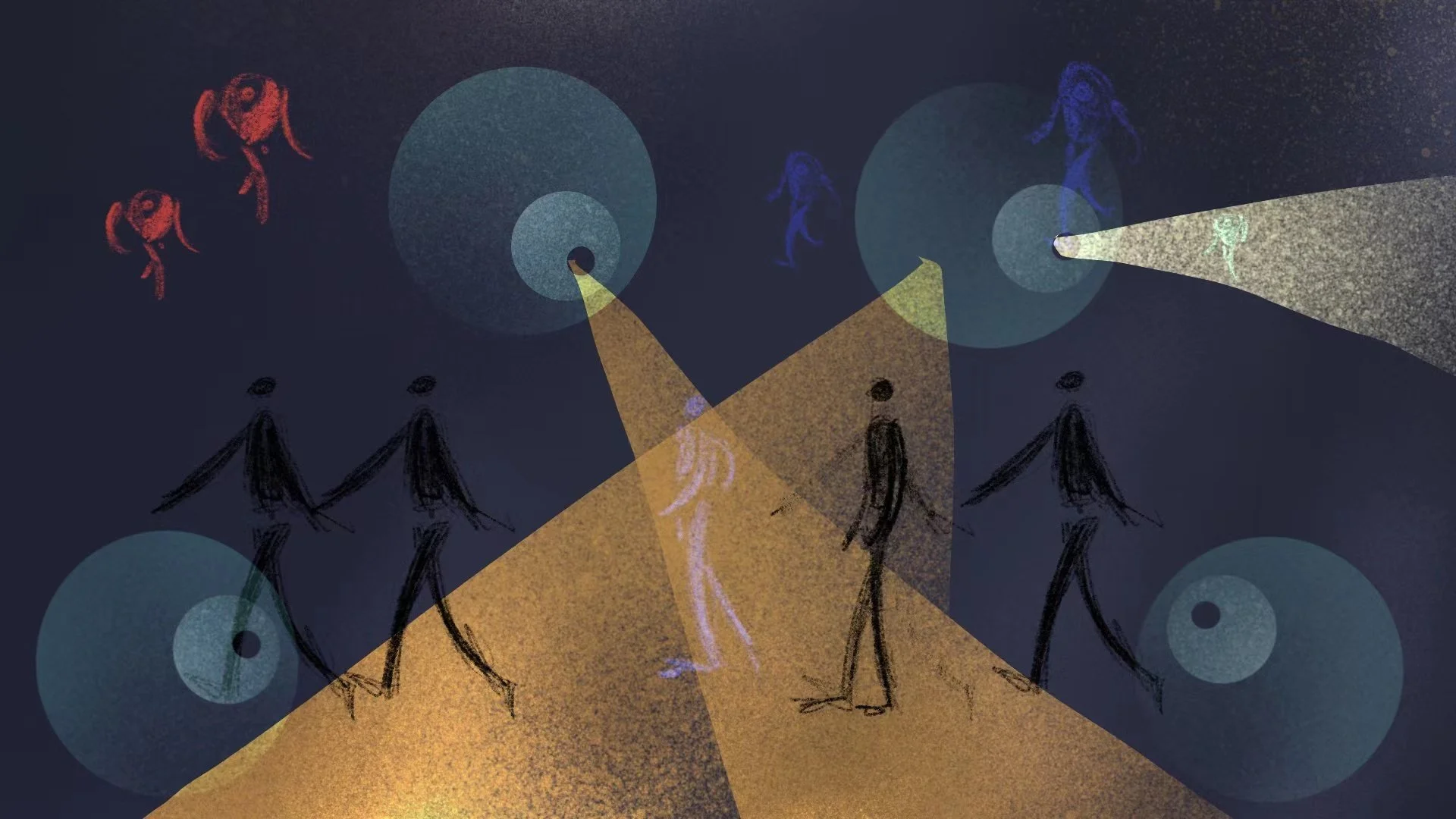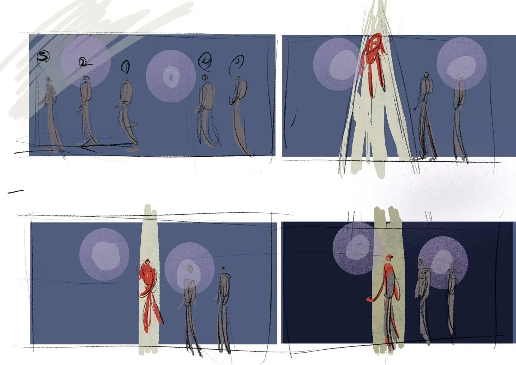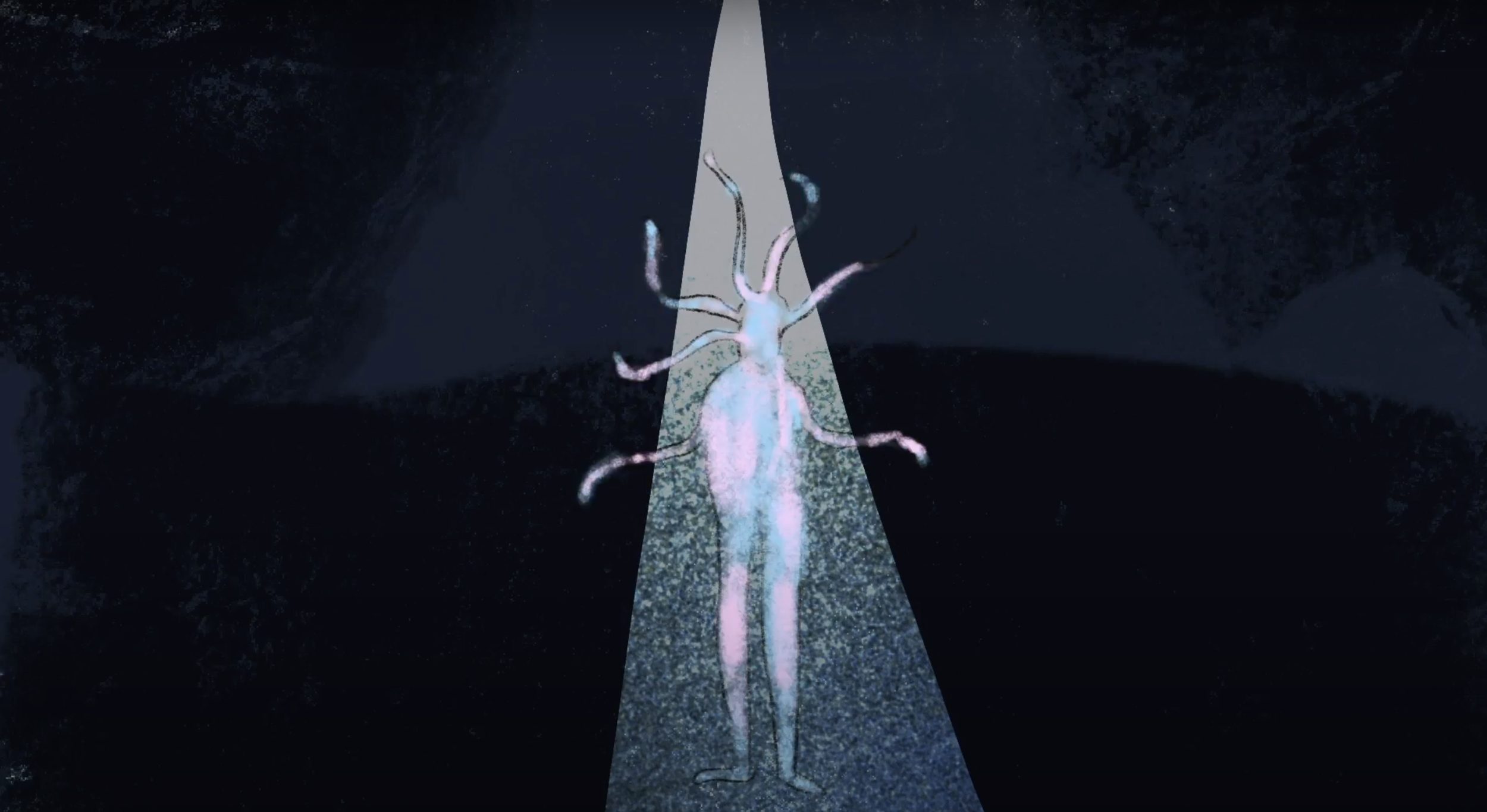 以动画的形式从孩子的视角出发,阐述了不同阶段孩子的变化。两个人脸面对面窃窃私语 展现出周围人对一个孩子从小到大不同的期待与教诲。第二个场景,小人犹犹豫豫前进插进一个队伍中 展现出孩子慢慢融入了所谓的“群体”变得逐渐失去自我,盲目跟从。第三个场景,两双大手不停的揉捏孩子使得最终变成一个方方正正的方块,周围人的期待与教育方式是为了让孩子变成贴合社会的方块。第二个场景2,触手小人一开始舞动着颜色绚烂的触手代表着一开始孩子的想法是多姿多彩天马行空 充满想象力与活力的, 渐渐的触手小人身上的彩色触手开始脱落 颜色暗淡下去 代表着孩子最终选择放弃自己的想法。
